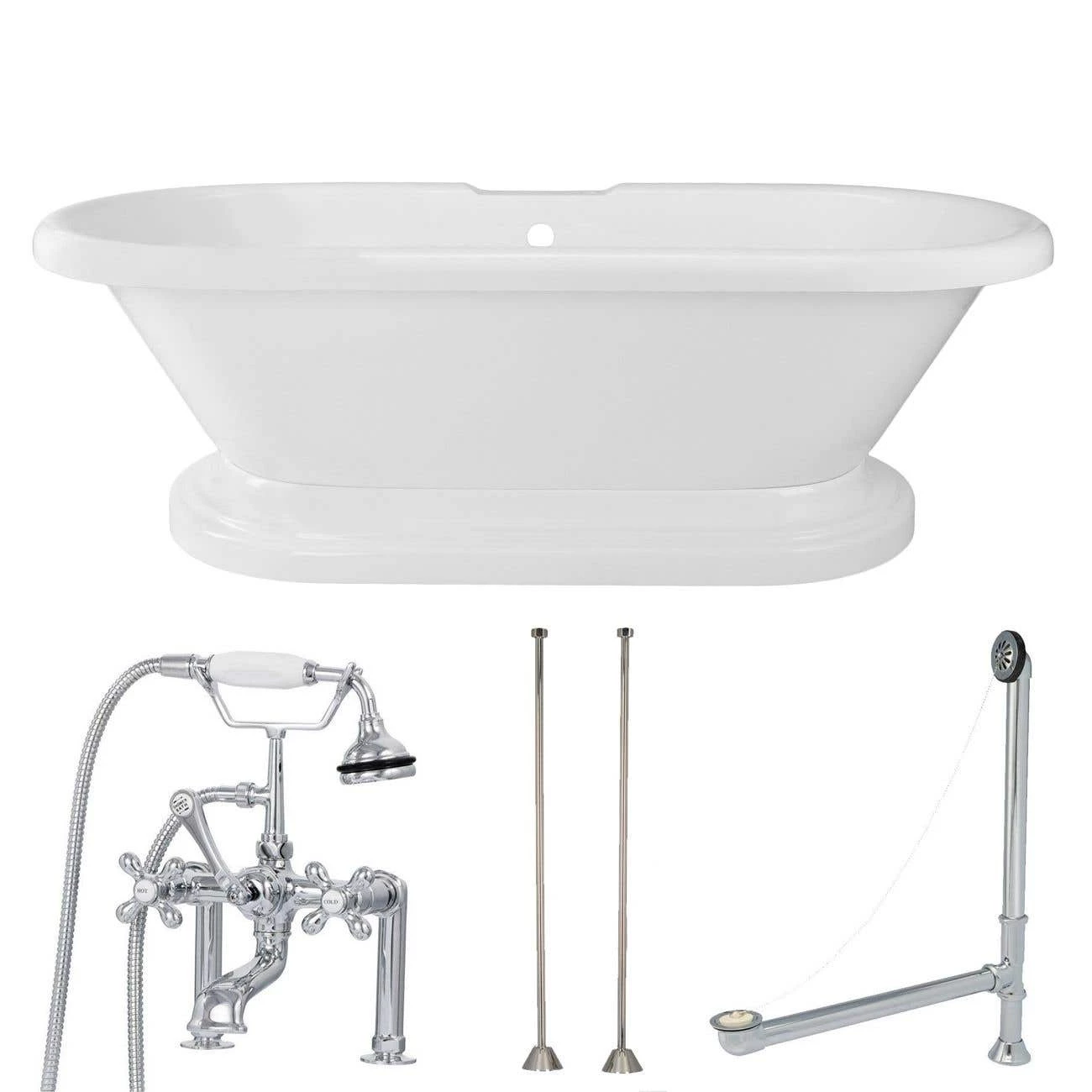 - Package includes: 71 Inch Acrylic Double Ended Pedestal Tub, English Telephone Tub Faucet with Handshower, Chain & Stopper Drain, and Supply Lines.
