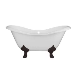 Florence 70 Inch Acrylic Double Slipper Clawfoot Tub – Rim Faucet Drillings – Lion Paw Feet