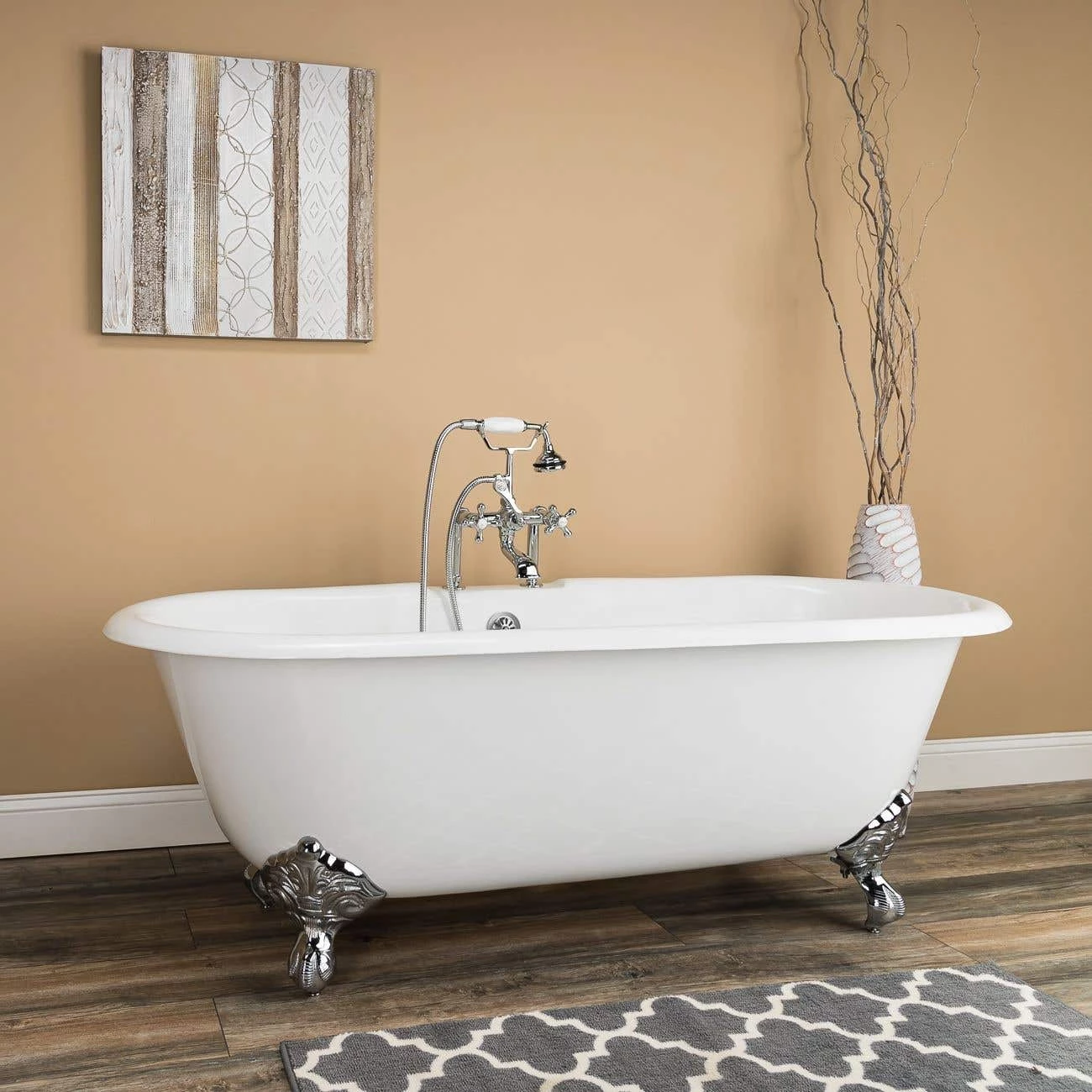 - Package includes: 66-inch Cast Iron Double Ended Clawfoot Tub, British Telephone Tub Faucet, Chain & Stopper Drain, and Supply Lines.