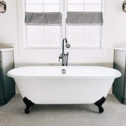 Make a statement with the gorgeous Cambridge Clawfoot Cast Iron Tub. Featuring detailed imperial ball and claw feet, this oval tub fits well in a variety of decorative themes, from traditional to contemporary. The cast iron material traps heat in the water, keeping your bath comfortably warm. This compact 60-inch clawfoot tub also fits comfortably in most bathrooms.