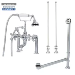 - Set includes: Clawfoot Tub Faucet with Hand Shower, Toe Tapper Pop-Up Tub Drain, and Straight Supply Lines with Shut Off Valves