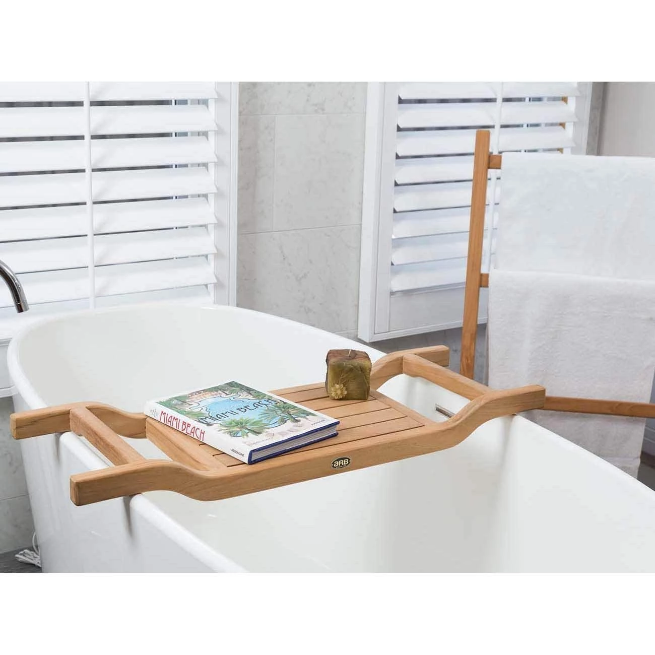 Sit back and relax while soaking in the suds. Keep everything you need close by for maximum relaxation with the Coach tub caddy by ARB Teak. It will become a staple in your bath routine in no time. It is perfect for holding your glass of wine, book, candle or hand towel.
