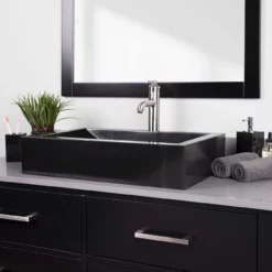 Hand-carved from solid granite, the Deveraeux Vessel Sink is one of a kind. This luxurious sink has a smooth, polished exterior for a chic, modern style. The smooth, curved interior keeps water flowing to the drain while being an eye-catching addition to your master bathroom.