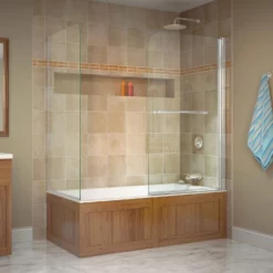 The DreamLine Aqua Swing is a frameless pivot tub screen door with a contemporary European flair to enhance the appearance of your bathroom. The design offers a clean, elegant and open look to complement your decor. Clean lines and a continuous hinge of the Aqua Swing add style and create an open, inviting shower space. Choose DreamLine for the ultimate solution for your shower project!