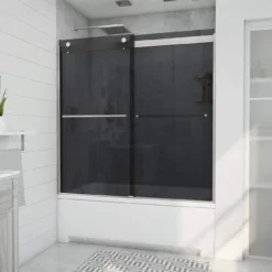 The DreamLine Sapphire is a semi-frameless sliding bypass shower or tub door with a modern, elegant design and a striking look. The Sapphire features thick tempered glass, convenient dual towel bars and sleek rollers for smooth gliding action. Integrated vinyl stoppers offer glass safety and operational security for the Sapphire. DreamLine exclusive ClearMax water and stain resistant glass coating provides superior protection from buildup and easy maintenance. Turn your shower space into a gem with the Sapphire shower door!