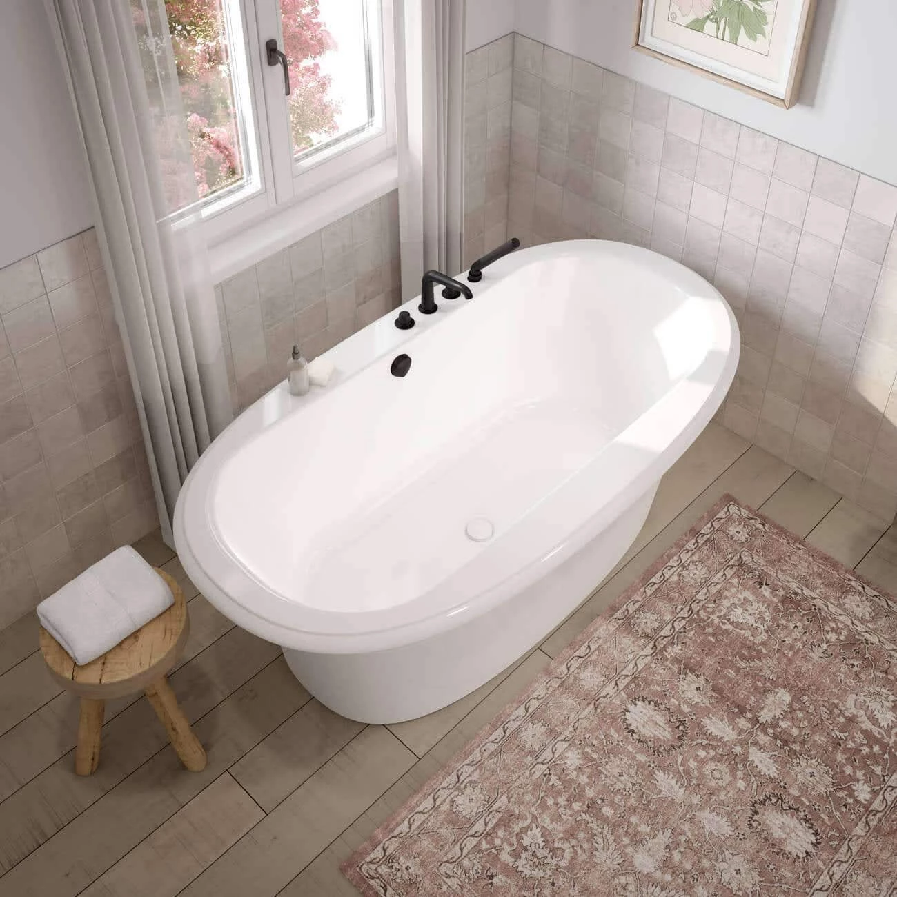 Transform your bathroom into a retreat with the Ella 6636 Sleek freestanding tub from MAAX. The maximized bathing well and comfortable backrest make this the perfect tub for longer indulgent soaks. The timeless oval shape is coupled with a symmetrical design to complement any bathroom style.
