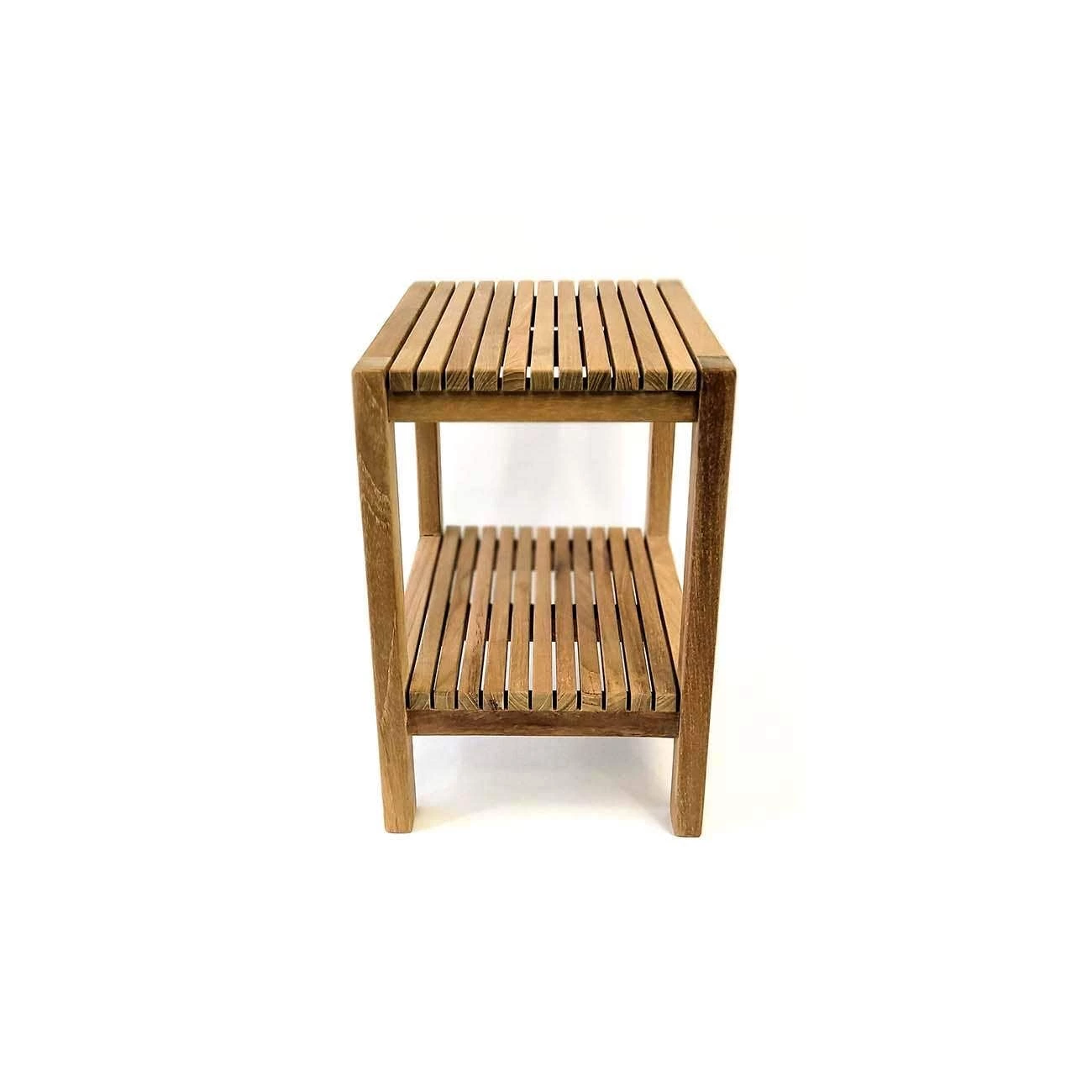 The beautiful Fiji Shower Bench with narrow teak wood slats and slim legs creates a slick look that complements modern or classic showers. Unlike built-in or tile shower benches, this teak shower bench will never be cold to the touch, making it perfect to use in the shower.