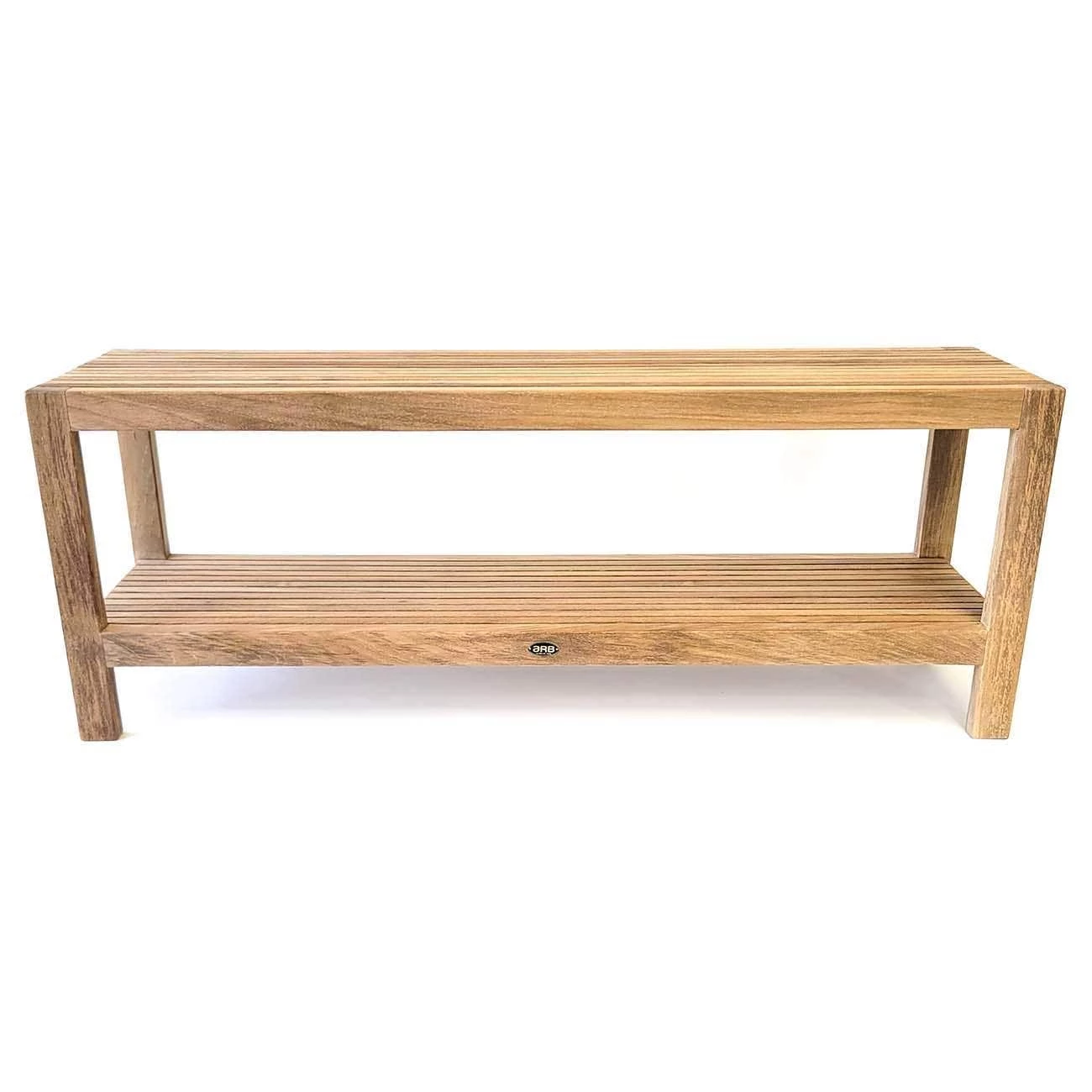 The beautiful Fiji Shower Bench with narrow teak wood slats and slim legs creates a slick look that complements modern or classic showers. Unlike built-in or tile shower benches, this teak shower bench will never be cold to the touch, making it perfect to use in the shower.