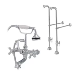 A double post design supporting your freestanding bathtub faucet with handshower makes for an eye-catching statement in any bathroom, especially paired with an elegant British telephone faucet. This 2-handle clawfoot tub faucet is both beautiful and resilient, with solid brass construction and a range of premium finishes to choose from. Lend a unique style to your bathroom with this freestanding bathtub faucet and freestanding supply line kit. The traditional style faucet features metal cross handles and lever diverter with porcelain inlays, as well as a hand shower with a porcelain handle. This English-style faucet is the perfect addition to your clawfoot bathtub.
