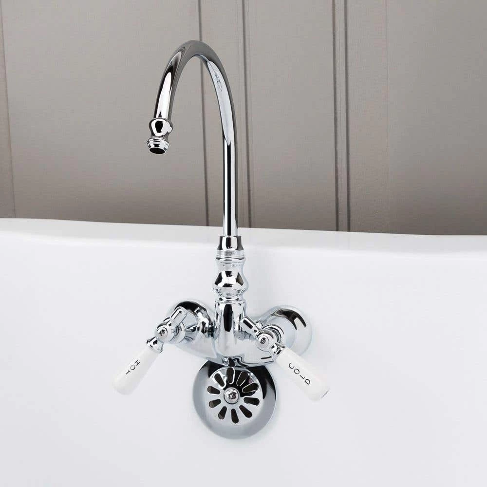 Everything about your clawfoot tub is luxurious, so why not have your faucet be the same. A gooseneck tub faucet is a must-have for your clawfoot bathtub. Constructed of premium solid brass, this tub faucet will be a quality addition to your tub. Ceramic quarter-turn valves offer a smooth, drip-free operation, while porcelain lettered lever handles offer a classic look, adding elegant in any bathroom.