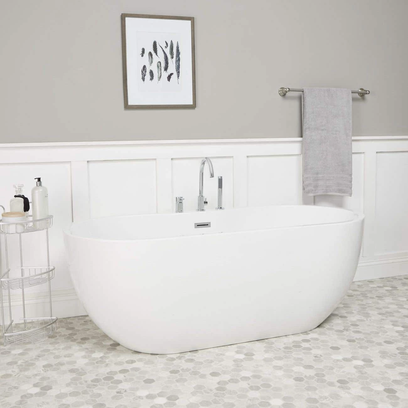 - Package includes: Hudson 55 Inch Acrylic Double Ended Freestanding Tub and Contemporary Deck Mount Tub Faucet with Handshower