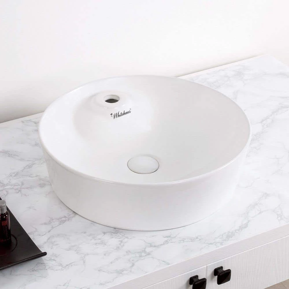 Isabella Collection Square Above Mount Basin With Overflow And Single Faucet Hole – White