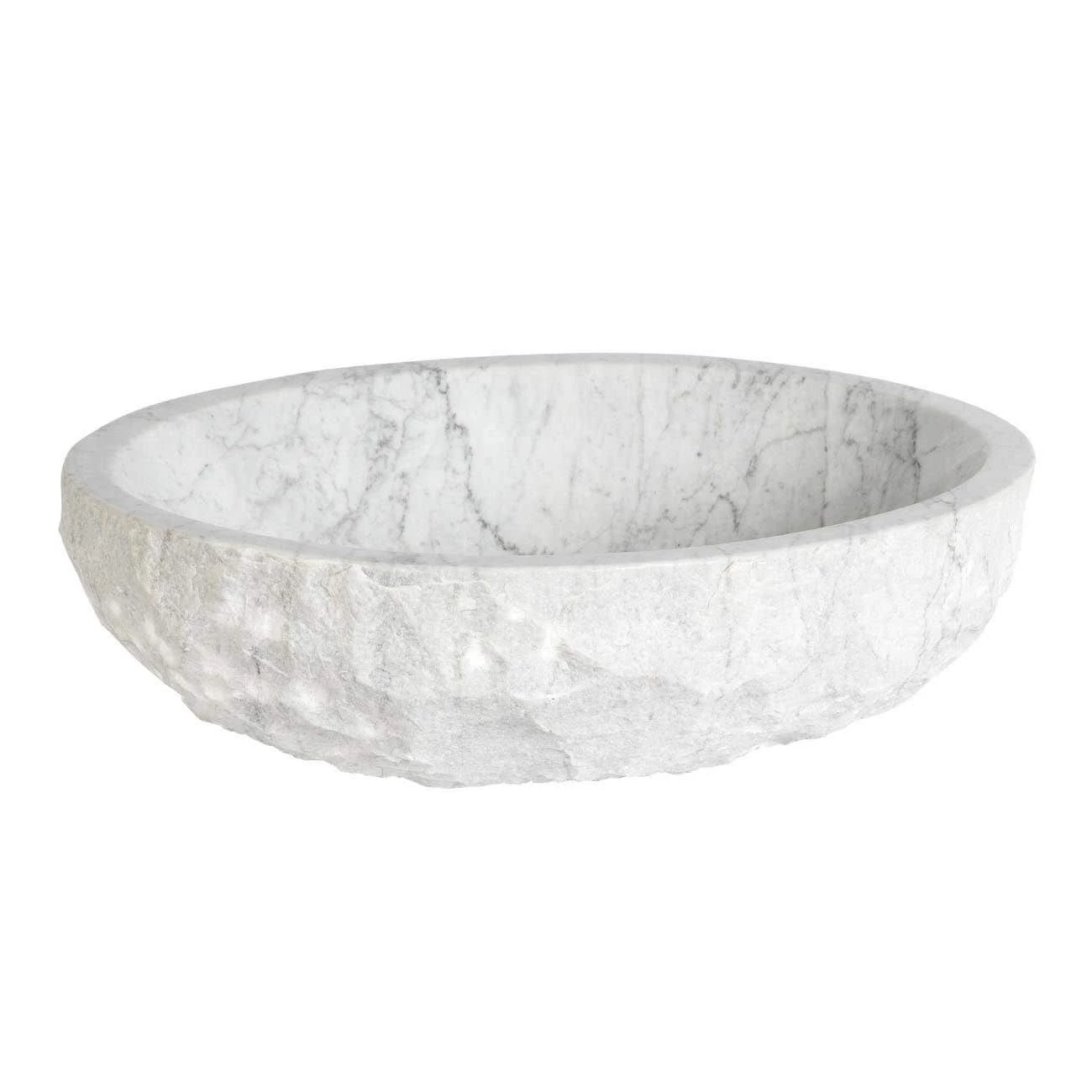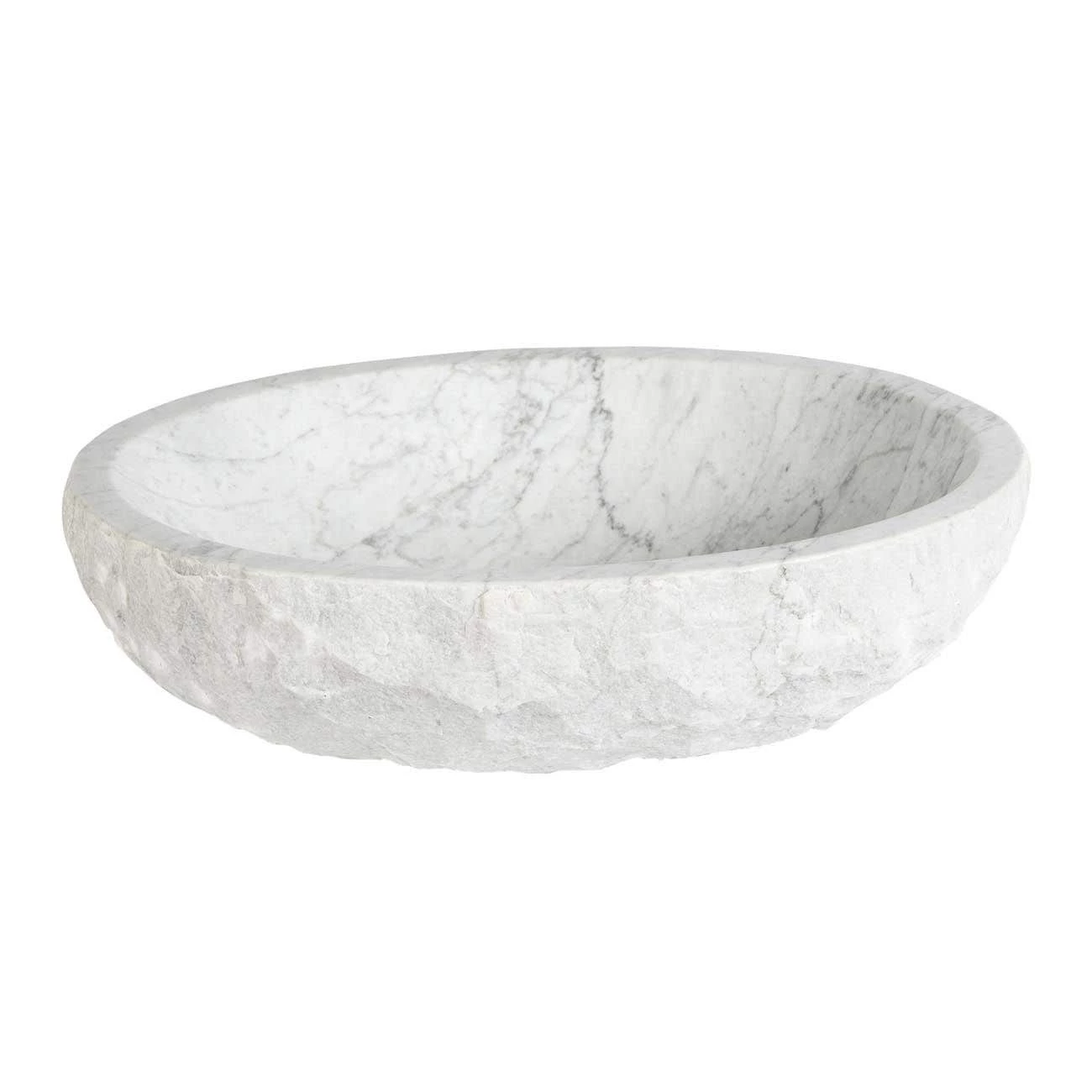 Carved from natural marble, this beautiful Italian Cararra marble vessel sink will be a wonderful addition to your master bathroom. The chiseled exterior and smooth, glossy interior offer the perfect contrast. Upgrade your bathroom today with this luxurious vessel sink in white. This stone bathroom sink is sure to be the centerpiece of your bathroom.