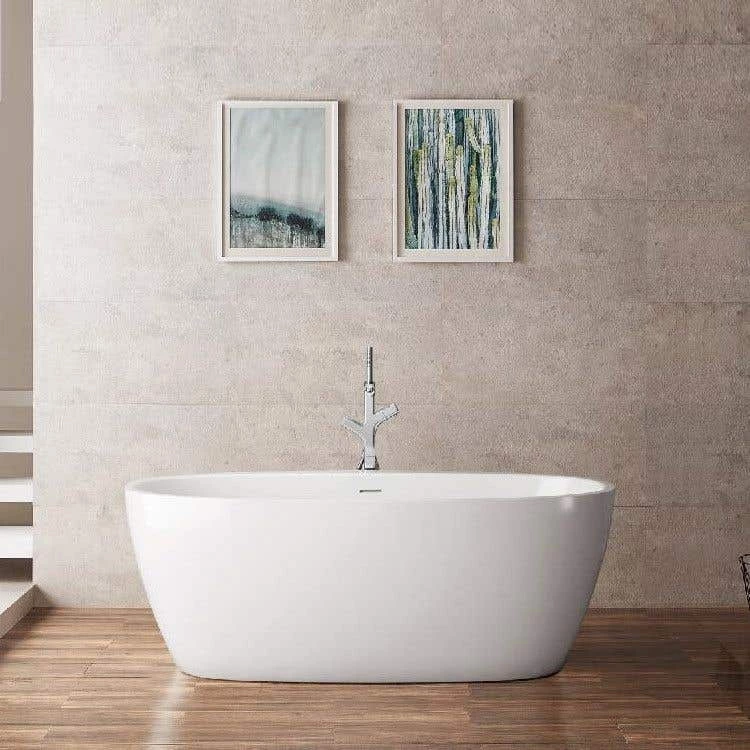 With clean and fresh appeal, the Luna Acrylic Tub effortlessly enhances your bathroom aesthetic. This classic oval tub features a stunning high-gloss finish that resists scratching and fading for lasting beauty. Enjoy the luxurious double ended tub design for comfortable lounging. An innovative design includes a built-in center drain and overflow system within the tub’s walls, eliminating any exposed pipes. This contemporary freestanding soaking tub features a solid one-piece construction, reinforced with a built-in metal frame base and four adjustable levers for effortless installation.