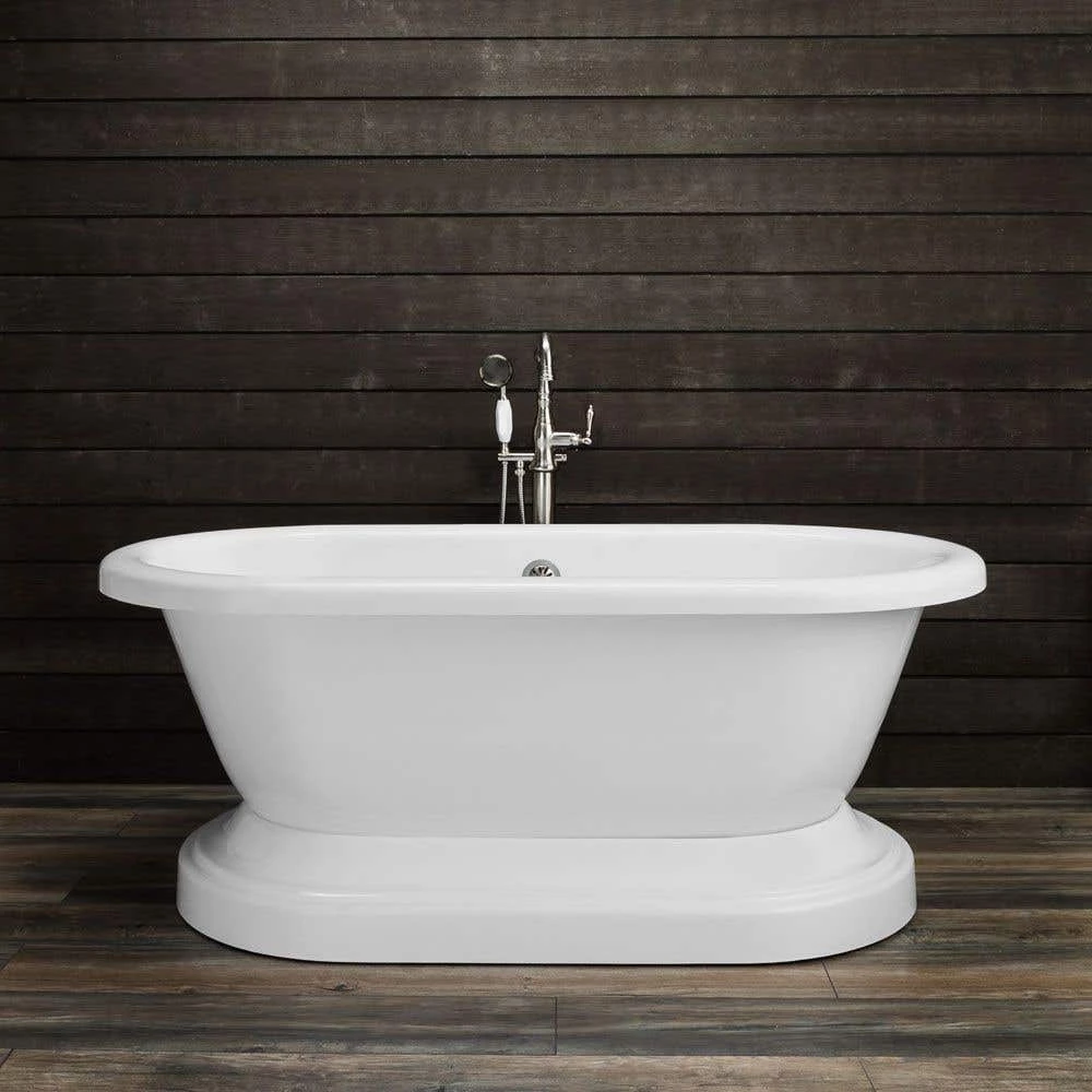 Lie back and relax in the stately Mansfield Pedestal Tub. Resting upon a shapely pedestal base and featuring a traditional rolled rim, this freestanding tub is a luxurious addition to your bathroom. To complete this peaceful look pair with a contemporary freestanding bathtub faucet.