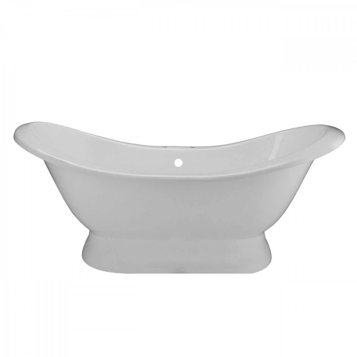 The Mimi Cast Iron Double Slipper Tub offers visual appeal and modern-day comfort. This elegant tub is elevated on a pedestal and is made of durable cast iron. The shape of the tub allows for deep soaking which is welcomed after a long day away from home.