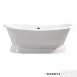 Sandringham 70 Inch Cast Iron Pedestal Bathtub – Continuous Rolled Rim – No Faucet Drillings – White