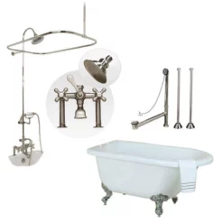 - Package includes: Savanna Acrylic Classic Clawfoot Tub, 54-inch Shower Package, Chain and Stopper Drain, and Supply Lines