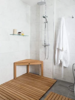 DreamLine Natural Teak Folding Shower Seat. ADA Compliant Shower Seat