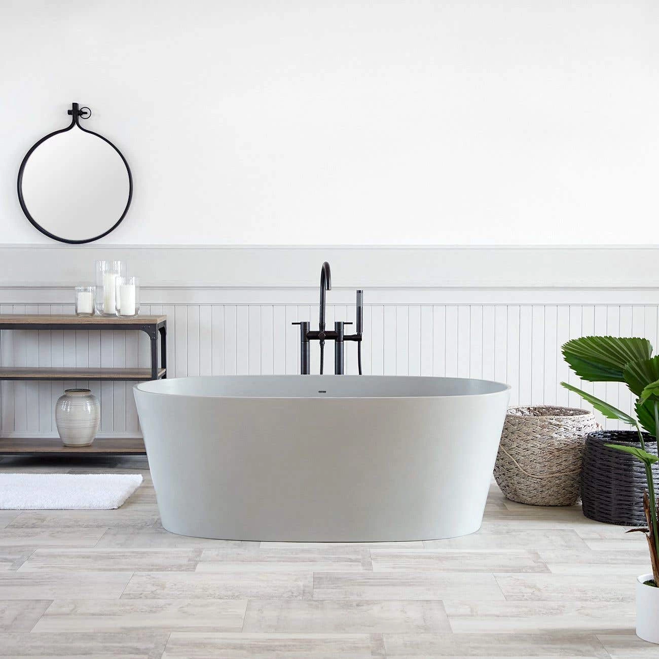 The smooth, clean lines of the Solano Resin Bathub create a relaxing atmosphere in your master bathroom. This double-ended bathtub is crafted with a premium resin, which is made from renewable and raw material. It is highly durable, easy to clean, and scratch-resistant.