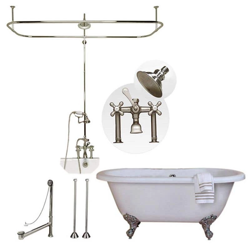 - Package includes 60-inch Double Ended Acrylic Clawfoot Tub, Shower Package, Chain & Stopper Drain, and Supply Lines.