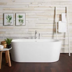 With a classic oval shape and a clean rim, the Wyatt Freestanding Bathtub Package is the perfect addition to your modern master bathroom. This eye-catching tub package comes with a stylish roman bathtub faucet and hand shower with a single lever handle. Perfect for modern bathrooms in need of an upgrade, the Wyatt is luxurious without being over-the-top with embellishments.